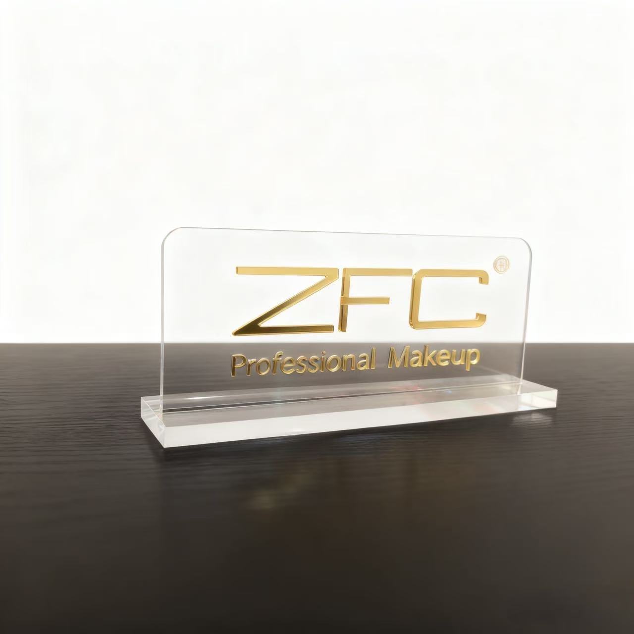 This elegant tabletop sign is crafted from high-quality clear acrylic, designed to showcase your brand with a premium 3D gold logo finish. The solid acrylic base provides stable support, while the transparent panel offers maximum clarity to highlight your brand name and tagline.